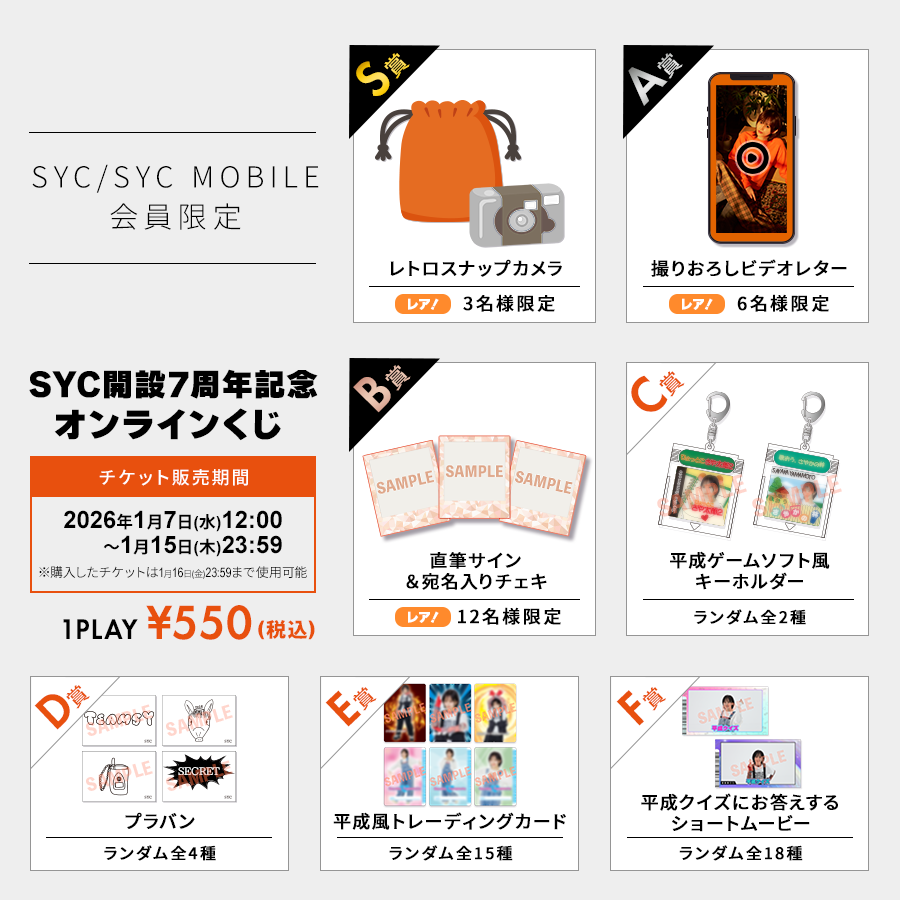 ▼「SYC開設7周年記念 オンラインくじ」はこちら