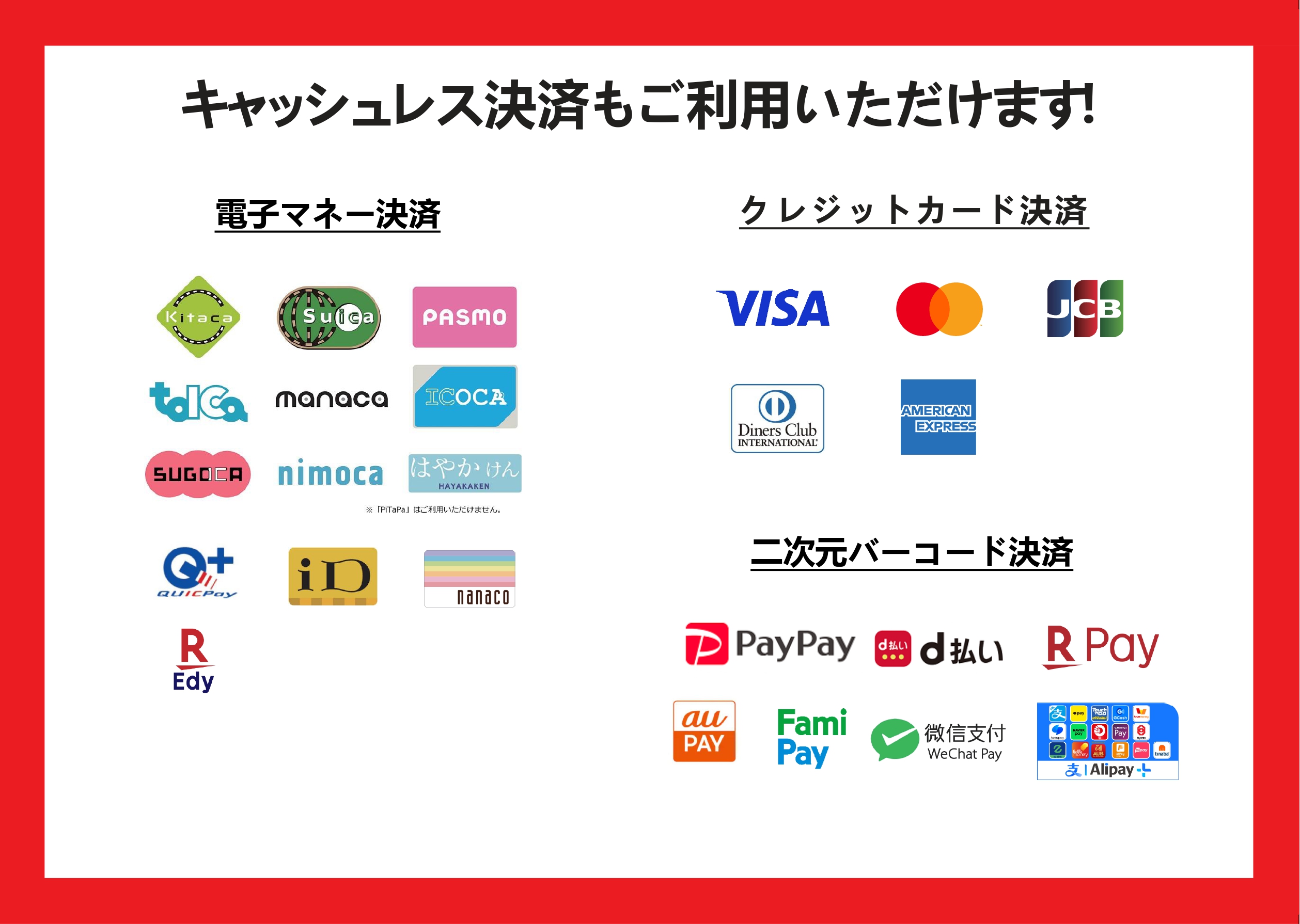 ・会場では現金でのお会計に加え、下記キャッシュレス決済方法がご利用いただけます